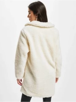 URBAN CLASSICS Damen Mantel Ladies Hooded Teddy In Beige