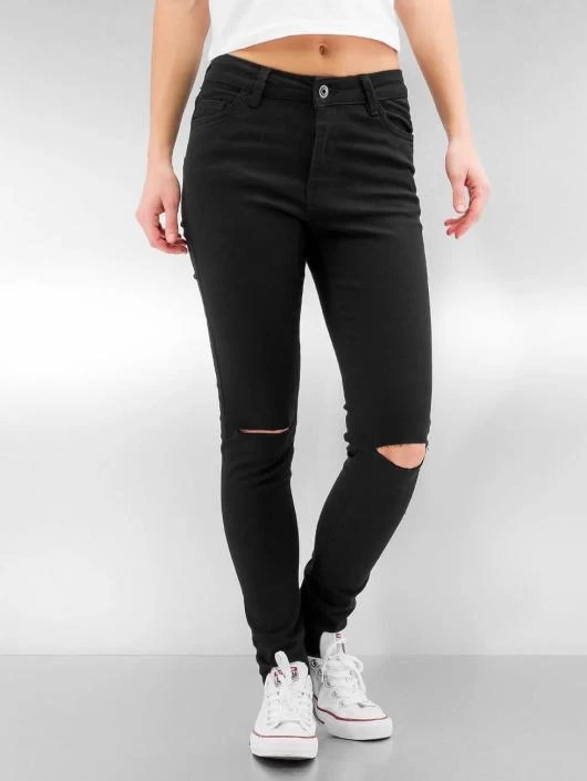 Damen Straight Fit Jeans Ladies Cut Knee in schwarz